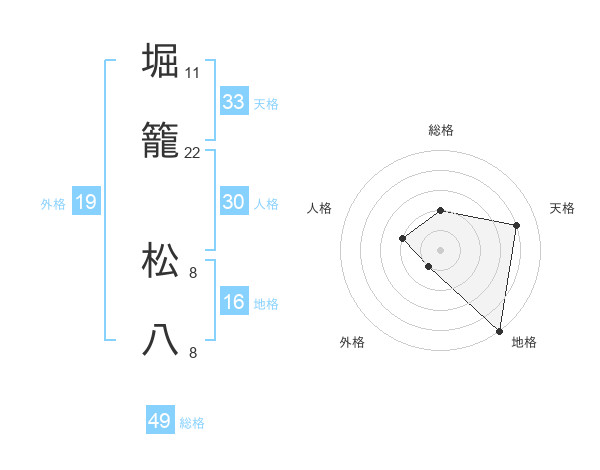 堀籠 松八さんの総格は49画の2点!