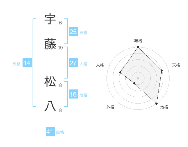 宇藤 松八さんを姓名の画数から五運を鑑定