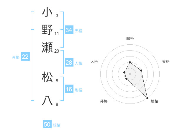 小野瀬 松八さんを姓名の画数から五運を鑑定