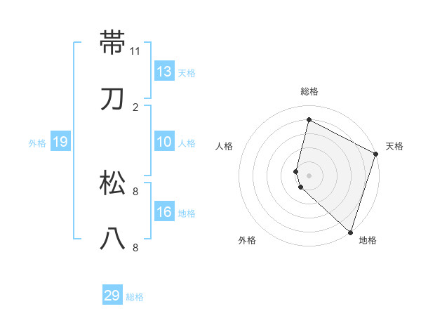 帯刀 松八さんの総格は29画の4点!