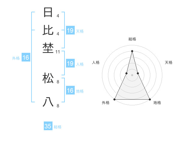 日比埜 松八さんを姓名の画数から五運を鑑定