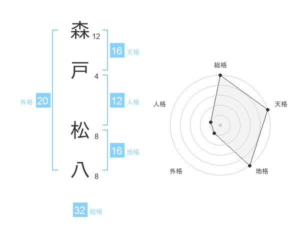 森戸 松八さんの天格は16画の5点!