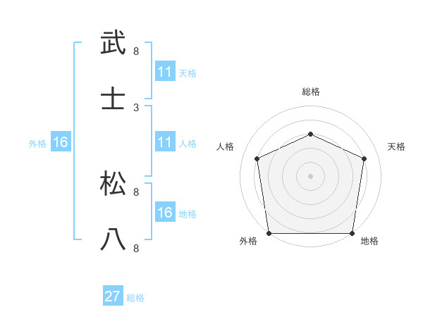武士 松八さんの総格は27画の3点!