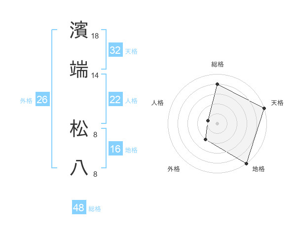 濱端 松八さんの総格は48画の4点!