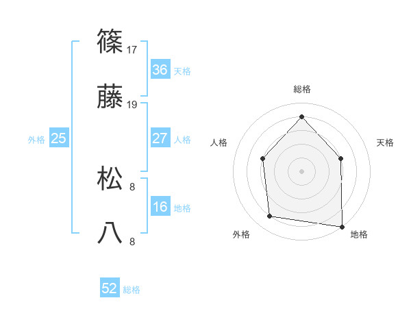 篠藤 松八さんの総格は52画の4点!