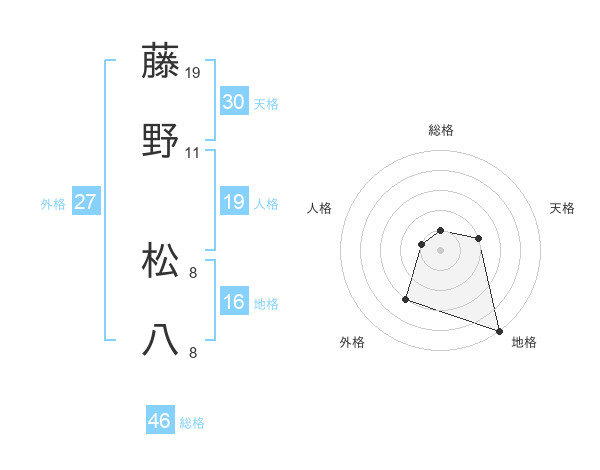 藤野 松八さんの総格は46画の1点!