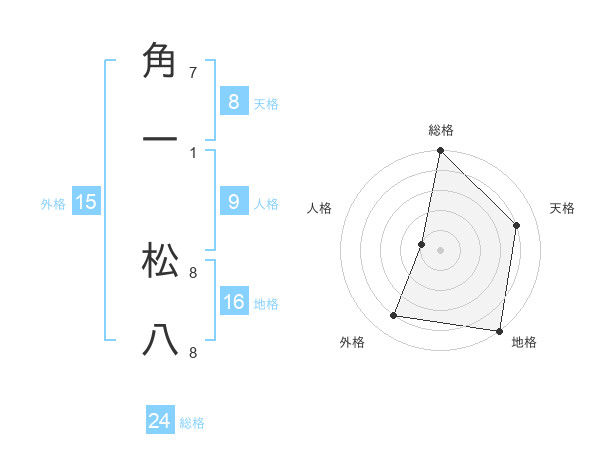 角一 松八さんの外格は15画の4点!