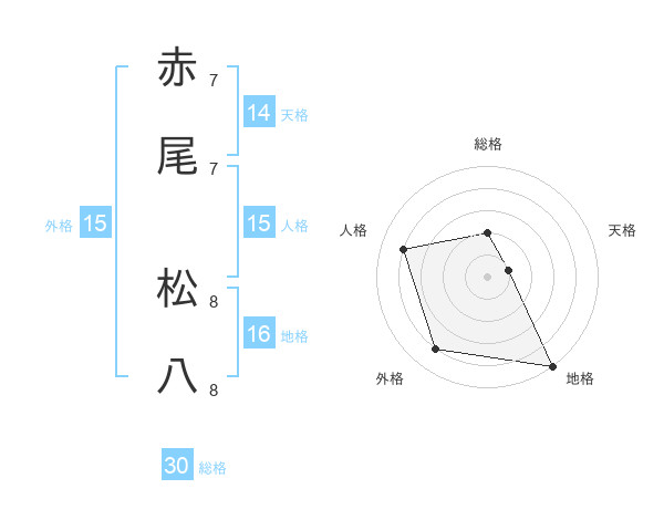 赤尾 松八さんの外格は15画の4点!