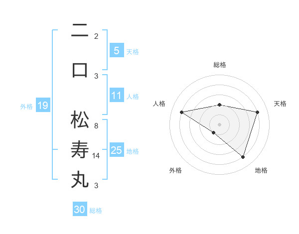 二口 松寿丸さんを姓名の画数から五運を鑑定