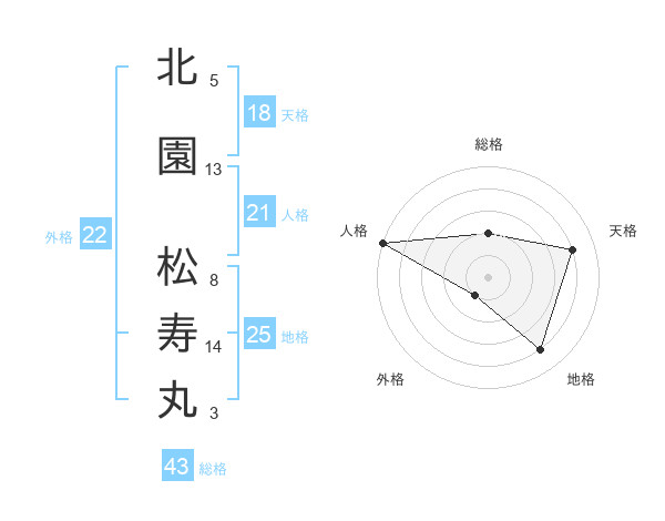 北園 松寿丸さんの人格は21画の5点!