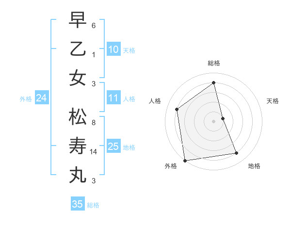 早乙女 松寿丸さんを姓名の画数から五運を鑑定