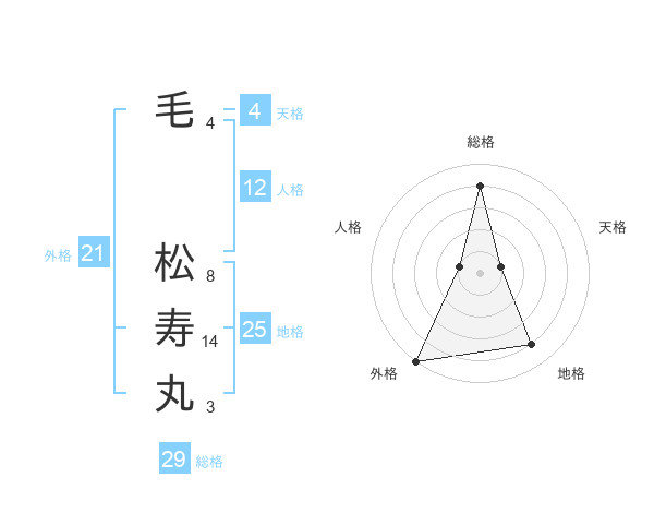 毛 松寿丸さんの総格は29画の4点!