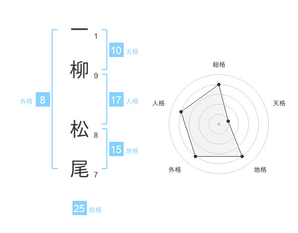 一柳 松尾さんの総格は25画の4点!
