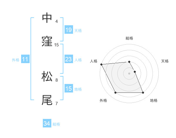 中窪 松尾さんを姓名の画数から五運を鑑定