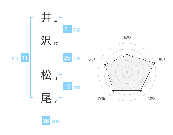 井沢 松尾さんを姓名の画数から五運を鑑定