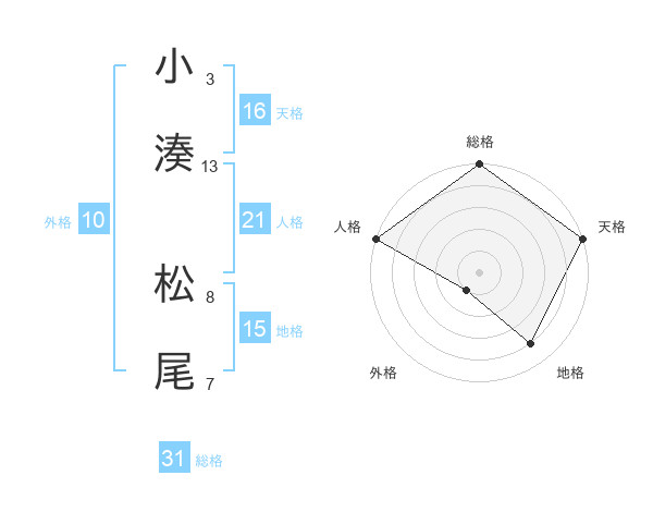 小湊 松尾さんの総格は31画の5点!