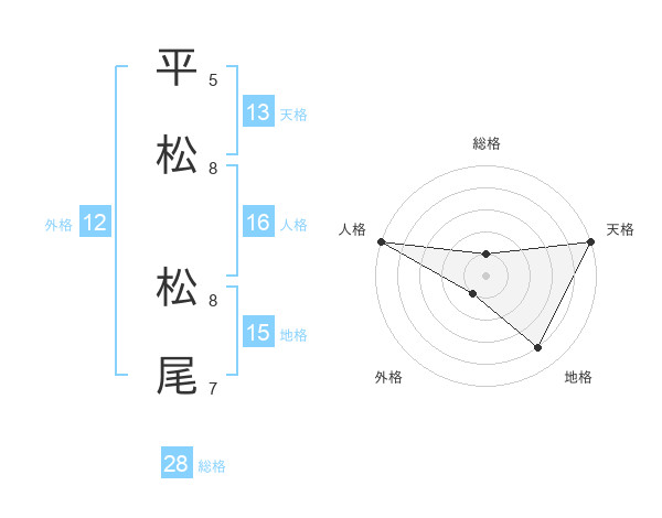 平松 松尾さんの天格は13画の5点!