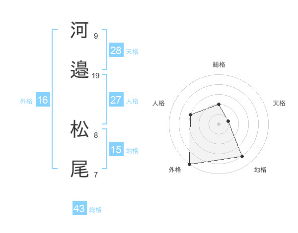 河邉 松尾さんの外格は16画の5点!