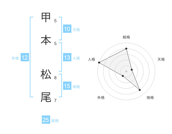 甲本 松尾さんを姓名の画数から五運を鑑定