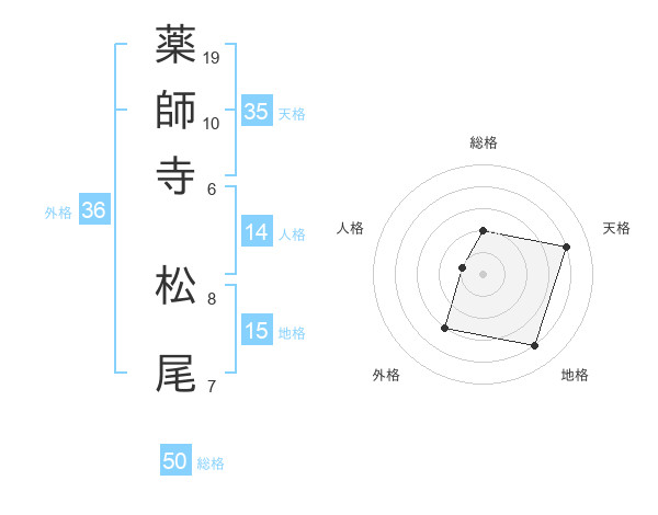 薬師寺 松尾さんの総格は50画の2点!