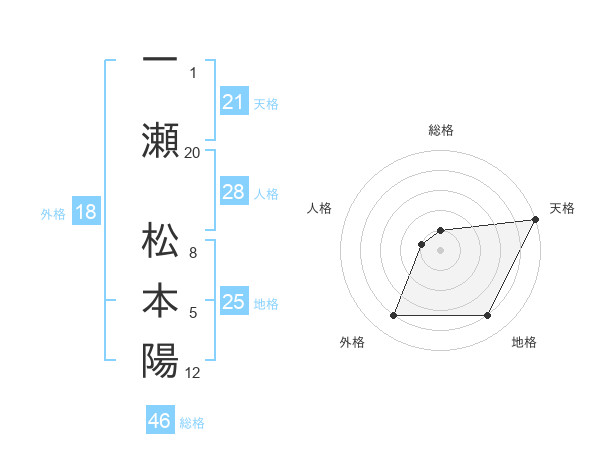 一瀬 松本陽さんの天格は21画の5点!