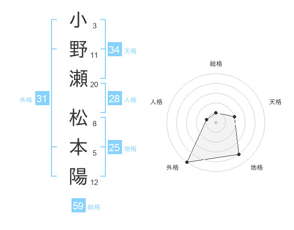 小野瀬 松本陽さんを姓名の画数から五運を鑑定