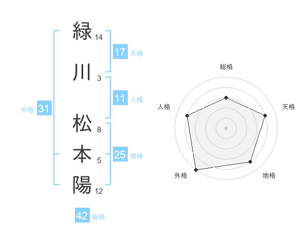 緑川 松本陽さんを姓名の画数から五運を鑑定