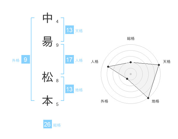 中昜 松本さんの天格は13画の5点!