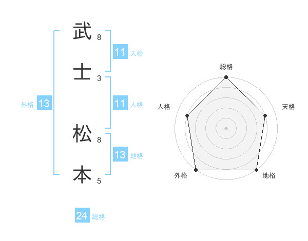 武士 松本さんの地格は13画の5点!
