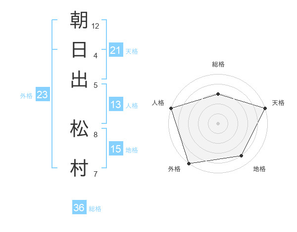 朝日出 松村さんを姓名の画数から五運を鑑定
