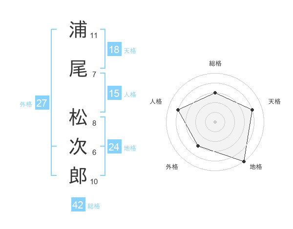 浦尾 松次郎さんを姓名の画数から五運を鑑定