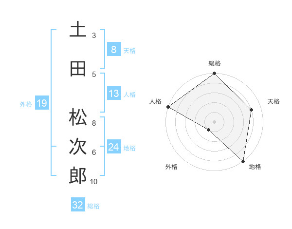 土田 松次郎さんの総格は32画の5点!