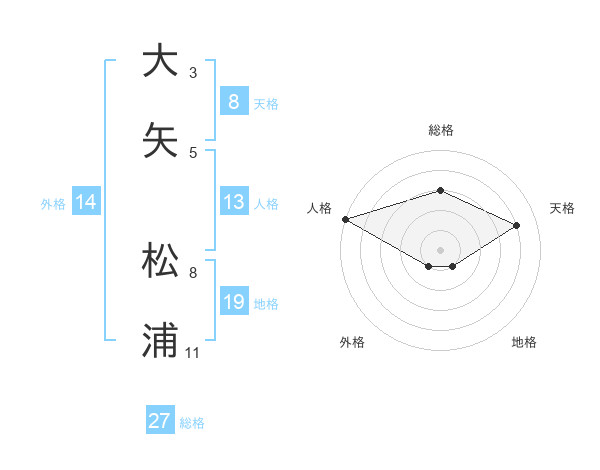 大矢 松浦さんを姓名の画数から五運を鑑定