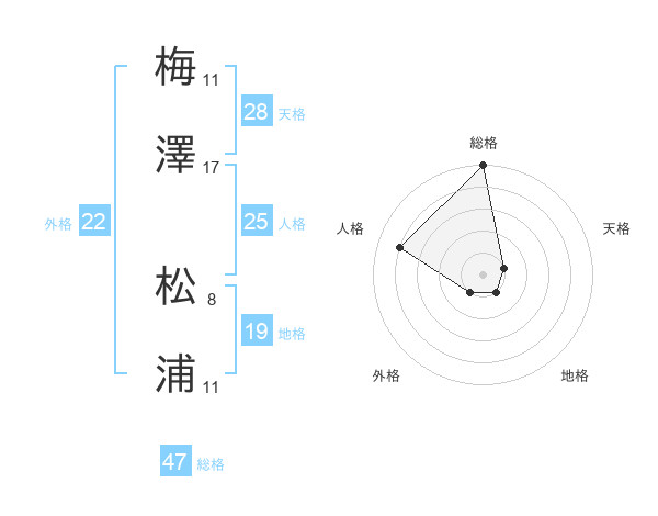 梅澤 松浦さんの総格は47画の5点!