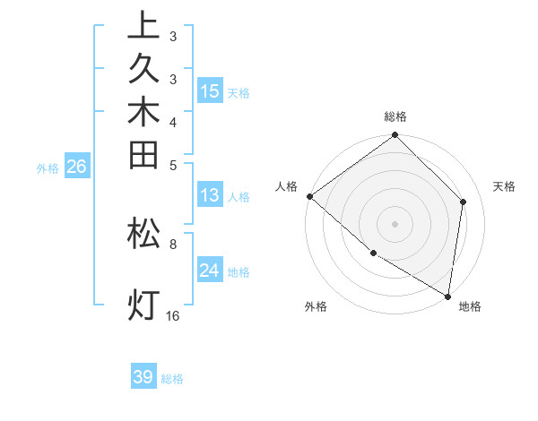 上久木田 松灯さんの総格は39画の5点!