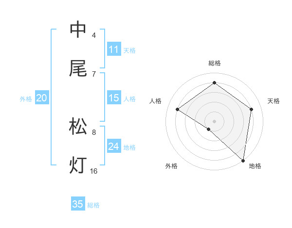 中尾 松灯さんの総格は35画の4点!