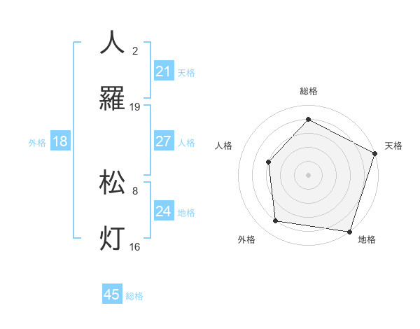 人羅 松灯さんの総格は45画の4点!