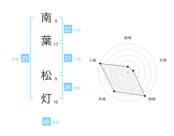 南葉 松灯さんの地格は24画の5点!