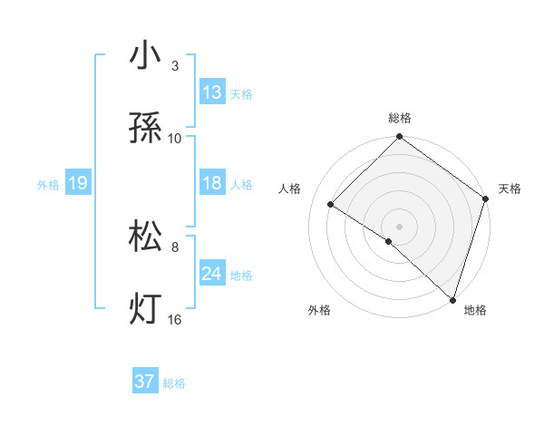 小孫 松灯さんの総格は37画の5点!