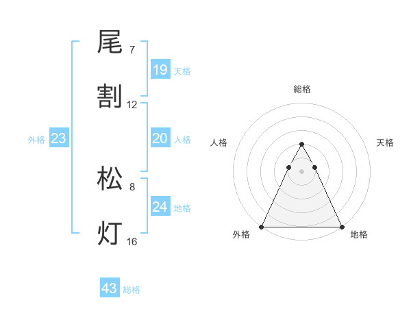 尾割 松灯さんを姓名の画数から五運を鑑定