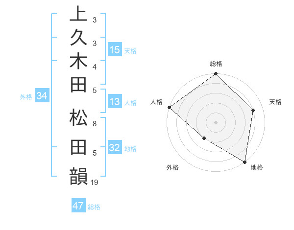 上久木田 松田韻さんの総格は47画の5点!