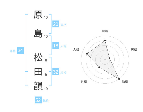 原島 松田韻さんを姓名の画数から五運を鑑定
