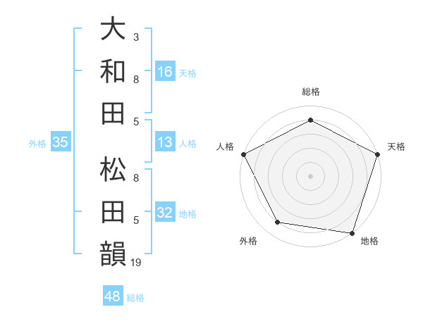 大和田 松田韻さんを姓名の画数から五運を鑑定