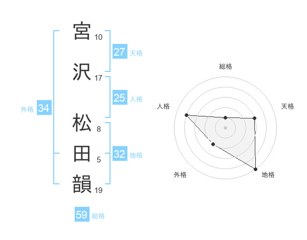 宮沢 松田韻さんの地格は32画の5点!