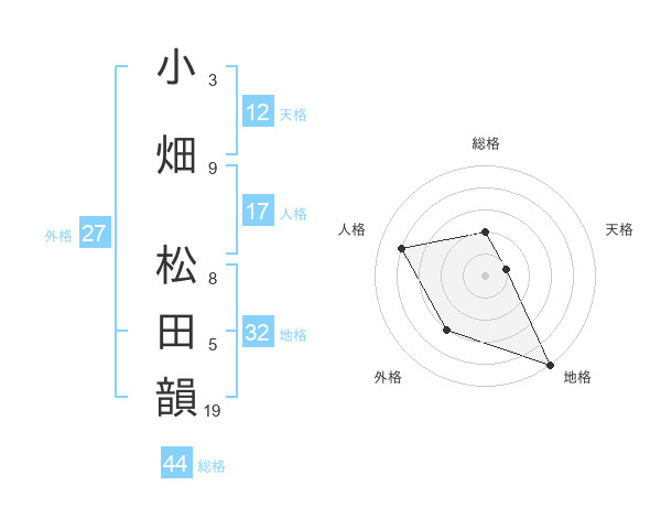 小畑 松田韻さんを姓名の画数から五運を鑑定