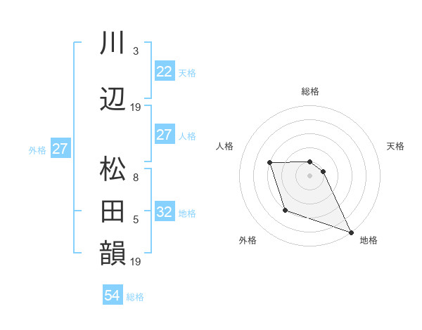 川辺 松田韻さんを姓名の画数から五運を鑑定