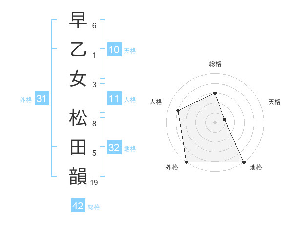 早乙女 松田韻さんの総格は42画の3点!