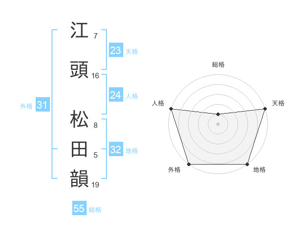 江頭 松田韻さんを姓名の画数から五運を鑑定