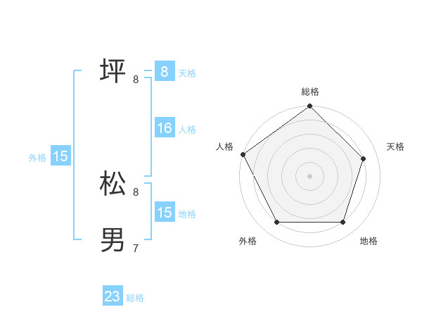 坪 松男さんの総格は23画の5点!