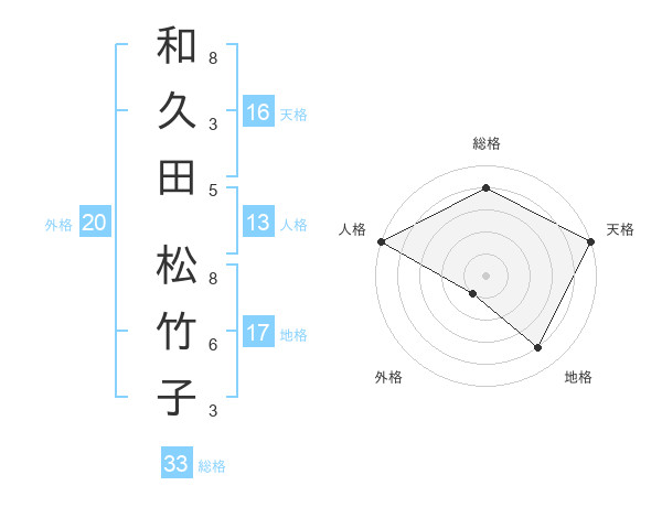 和久田 松竹子さんを姓名の画数から五運を鑑定